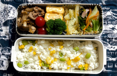 ※ 他のメニューは「枝豆とコーンのご飯」「卵焼き」「野菜炒め」「ポテト」